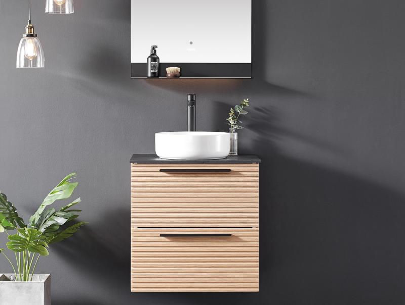 Como Exclusive består av 3 designvalg: Liggende spiler, Stående spiler og Buet spiler. Hver av disse får du i fargene: Amerikansk Valnøtt, Eik, Sort Matt, Hvit Matt, Eden Green, Beige Sand Matt og Lys Grå Matt. Møbelet har BLUM fulldempede skuffeskinner. Anti-skli matte i skuffene. Fronter og sidepanel er i høykvalitets folie. Høyskap med justerbare glasshyller i øvre del. COMO får du breddene: 60 - 90 og 120. Como har dybde: 39 cm. Vi har hatt enorm suksess med COMO siden vi utviklet den i 2014. Vi laget et konsept hvor sluttbruker enkelt kan bytte front- og sidepanel så ofte de vil! Med vårt konsept kan du ha et eller flere ekstra sett i boden eller kjøpe et ekstra sett om du blir lei fargen du allerede har! Det er rimelig å bytte farger på ditt bad med COMO, da hovedkostnaden ligger i grunnmøbelet. Du kan gjerne velge dagens trendfarge fordi du vet det er enkelt å bytte når du vil. Du kan bytte farger og design på ditt bad når sommer går mot høst, vinter går mot vår, når du skal ha party! eller rett og slett bare fordi du har lyst. Vi har et stort utvalg av servantløsninger, benkeplater og håndtak. LED-Lyslist til alle modellene. LUXE innmat til skuffene i plexiglass og stikkontakt. Håndtak bestilles separat. Les mer om Como-serien her: www.scalabad.no *Pris inkluderer Como Grunnmøbel med front- og side-panel samt midtdeler på dobbeltmøbel.
