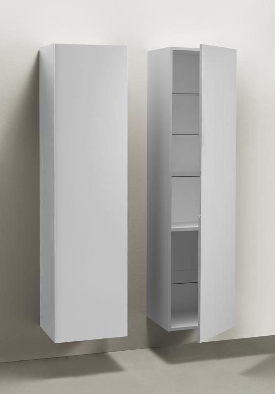Høyskap med romslige mål i matt overflate hvitt og svart eller hvit høyglans. Mykstengende dør samt integrert håndtak. Glasshyller med justerbar høyde og hyllebærere som fester vertikalt. Ferdigmontert stamme som monteres opp på skinne på veggen, noe som gjør det enkelt å installere for en person. Døren kan monteres på høyre eller venstre side. Kjøp til strømuttak 126 72 65.
