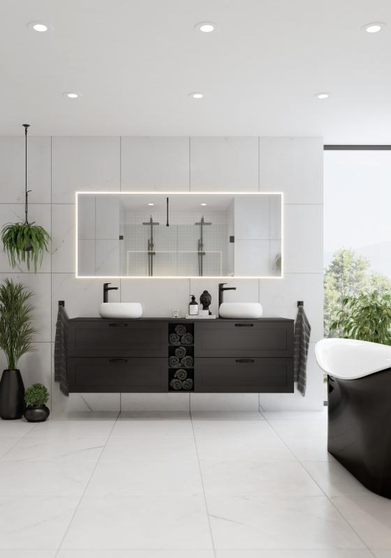 UNA speil - et moderne og lekkert speil med anti-dugg funksjon og LED lys. Una speilet er det speilet som gir best lys. Led-lyset rundt kan justeres både i styrke og varme. Dette gir deg muligheten til å velge mellom en god belysning eller en lunere stemning på baderommet. Speil med lys er godt egnet ved behov for ekstra belysning på baderommet. Speilet er enkelt å rengjøre og monteres og justeres enkelt på vegg med en monteringsskinne på baksiden. Una speil fra 80cm bredde og opp til 180cm bredde kan henges både horisontalt og vertikalt. Antidugg-funksjon Lys dimbart på speilet Justerbar fargetemperatur fra 2700-6500K Hukommelse (husker siste innstilling på lys)