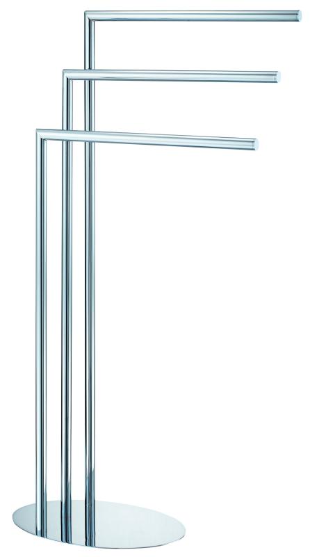 Frittstående håndklestativ med plass til tre håndklær. Produsert med oval fot. Forkrommet stål. Høyde 91cm.