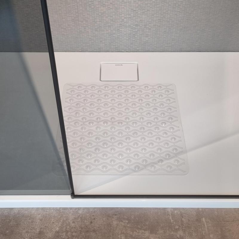 Økt komfort og sikkerhet på badet. Matten har dreneringshull. Sugekopper på undersiden sørger for at matten ligger stabilt i dusjen. Farge: Transparent