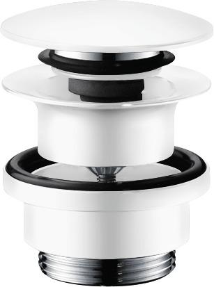 Push-Open ventil i høy kvalitet i matt hvit. Med Push-Open ventil fra hansgrohe er det enkelt å åpne eller lukke ventilen: trykk bare på avløpet ovenfra - ferdig. Ventilen er laget av slitesterk messing og passer til alle servanter med et standard G 1¼ tommer avløp. Hetten kan tas av for rengjøring om nødvendig. En annen fordel: push-open ventilen kan kombineres med et armatur som ikke krever en trekkstang for avløpet og gir et mer elegant uttrykk. Push-Open ventilen brukes på servanter med overløp. For servanter og bolleservanter uten overløp er et ikke-låsbart avløpssett tilgjengelig som et alternativ (# 50001700). Eksklusiv overflate for individuelt design av badet Den matte, hvite overflaten gir en uttrykksfull kontrast og passer godt til et moderne baderomsdesign. Sammen med andre hansgrohe-produkter i samme farge gjør den det personlige drømmebadet mulig.