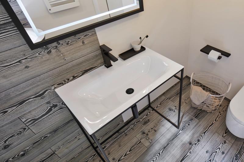 Vaskerom 250 cm Hvit mattt med lys eik benkeplate