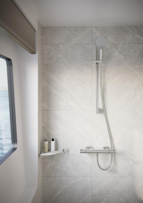 Få kontroll over dusjopplevelsen med økt komfort, sikkerhet og miljøvennlighet ved å velge en kvalitetstermostat fra hansgrohe! Styr vannmengden og temperaturen problemfritt og sikkert Dusjtermostaten Ecostat Comfort fra hansgrohe er en pålitelig dusjkontroll som kobles raskt og enkelt til eksisterende tilslutninger (utenpåliggende montert). Den moderne Ecostat Comfort-termostaten er laget av skinnende krom som er en fryd for øyet. På innsiden: patentert, slitesterkt innmat fra hansgrohe (keramisk ventil 180°). Vanntemperaturen og -mengden holdes konstant ved hjelp av to dreiegrep. Dette beskytter mot ubehagelige svingninger i dusjen ? uansett om vanntrykket i boligen varierer. En automatisk sikkerhetssperre ved 40 °C gjør at familien kan dusje uten å være redd for at vannet blir for varmt. Du kan selvsagt også stille inn temperatursperren etter eget ønske. Det er lett å lese de slitesterke bokstavene på de ergonomiske metallgrepene. En lyddemper gjør termostaten stillegående, mens tilbakeslagsventilen gjør det lett å opprettholde god hygiene. Ecostat Comfort-termostater er et optimalt valg når kun blandebatteriet skal skiftes ut. Eco-plus: EcoStop-knappen begrenser vannforbruket med opptil 10 l/min slik at du sparer både vann, energi og penger.