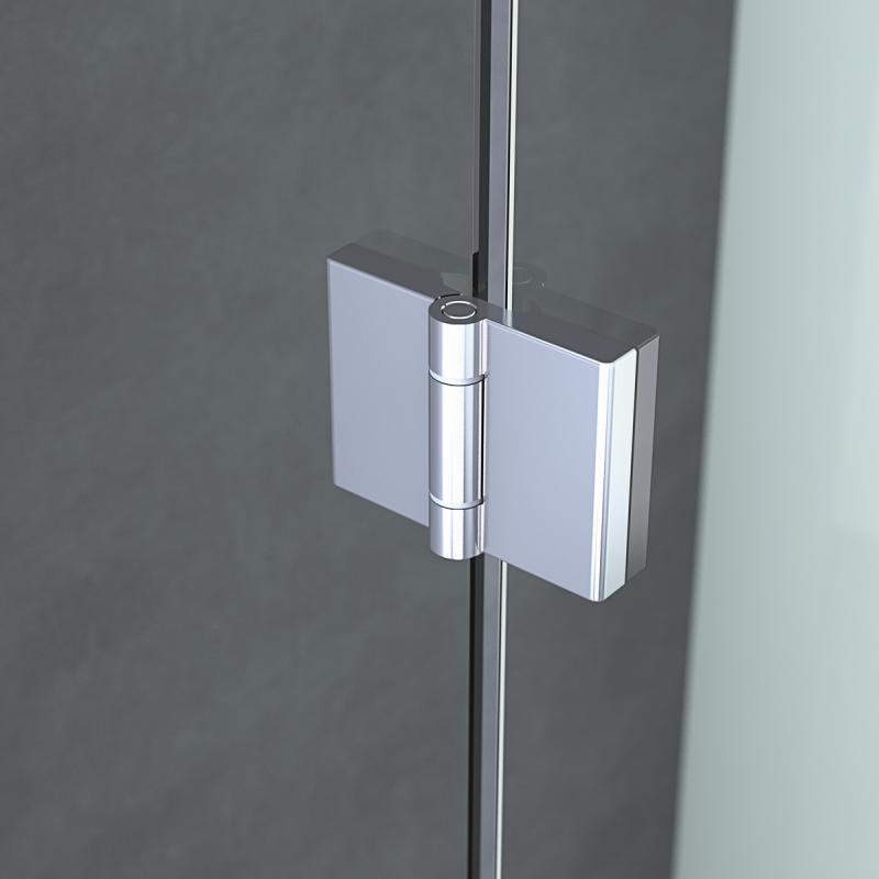 En smart løsning, hvor begge dører kan foldes inn når du ikke benytter dusjhjørnet, så de opptar minst mulig plass i rommet. Det gir god gulvplass på et lite bad og åpner rommet. Elegant og tidløs stil med slanke, firkantede profiler i sateng. Perfekt montering ved skjeve vegger og gulv takket være gode justeringsmuligheter. Høyde på 200 cm gir en effektiv dusjavskjerming, spesielt ved takmontert dusjhode. 6 mm klart sikkerhetsglass med EasyCare for enkel rengjøring og vedlikehold. Her i kombinasjon med Tower oppbevaringsreol til den ene døren, så du unngår rot i dusjområdet.