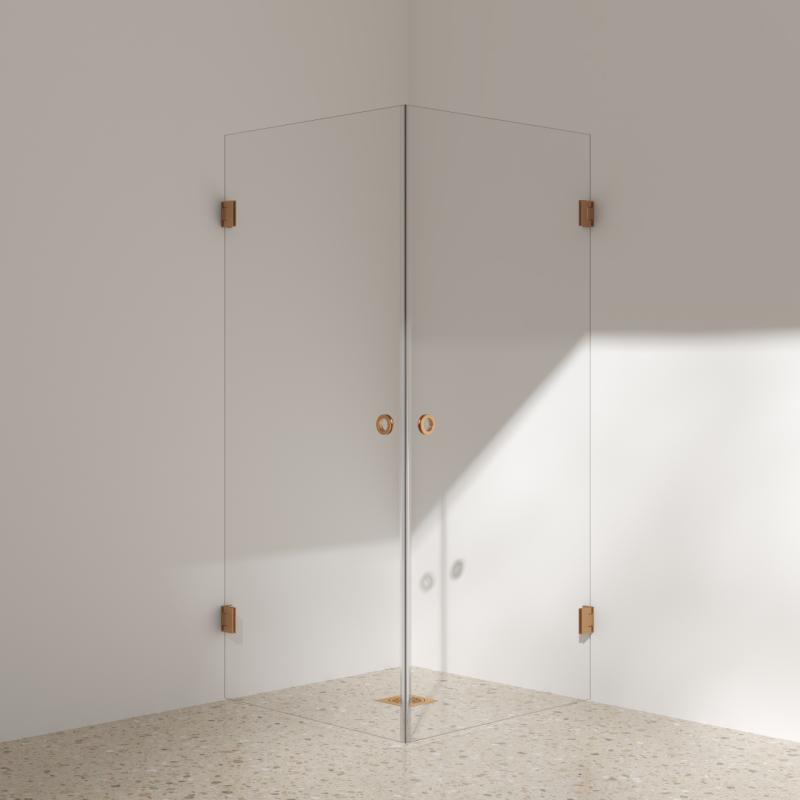 Silvano Dusjhjørne med klart glass fåes med henglser og fingergrep i 8 utvalgte overflater. Velg mellom: Børstet Stål, Bronse Matt, Gunmetal, Kobber Børstet, Gull Blank, Gull Børstet, Krom eller Matt sort til samme pris. Våre dusjvegger er laget i 8mm sikkerhetsglass og har dobbelsidig nano easyclean for enklere renhold. Settet inkluderer 2 stk dusjdører komplett med henglser og fingergrep samt magnetlister. Mål: 90x100x200cm *Subbelist medfølger ikke men fåes i transparent eller sort. *Varenummer gjelder Klart glass med hengsler og fingergrep i Krom