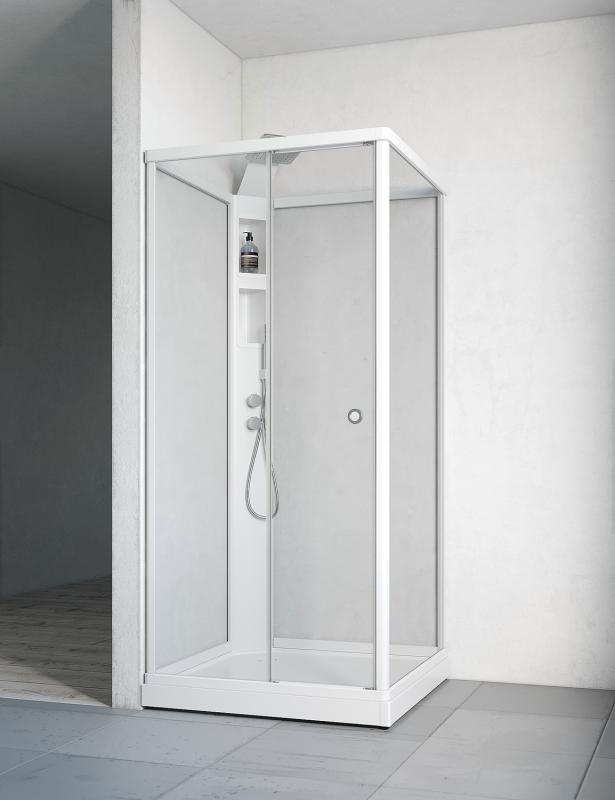 Flow Front inf Kabinett Hvit Klarglass 910x910x2180mm (BxDxH)