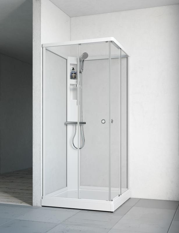 Flow Rett utp Kabinett Hvit Klarglass 910x910x2020mm (BxDxH)