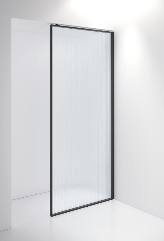 Fast vegg fra gulv til tak i 6 mm glass og ramme. Måltilpasses på bredde 400 - 1200 mm og høyde 1400 - 2700 mm. Artikkelnummer og pris gjelder retroglasset Sway og ramme Onyx. Finnes også i andre glass; Frosted, Smoke og Clear. Rammen kan også fås i Stone utførelse.
