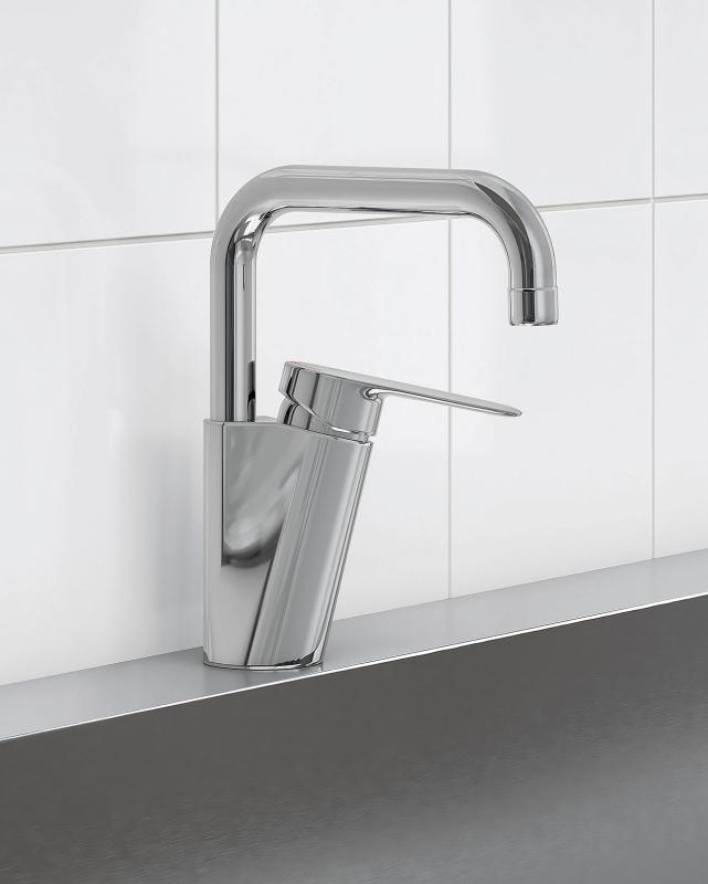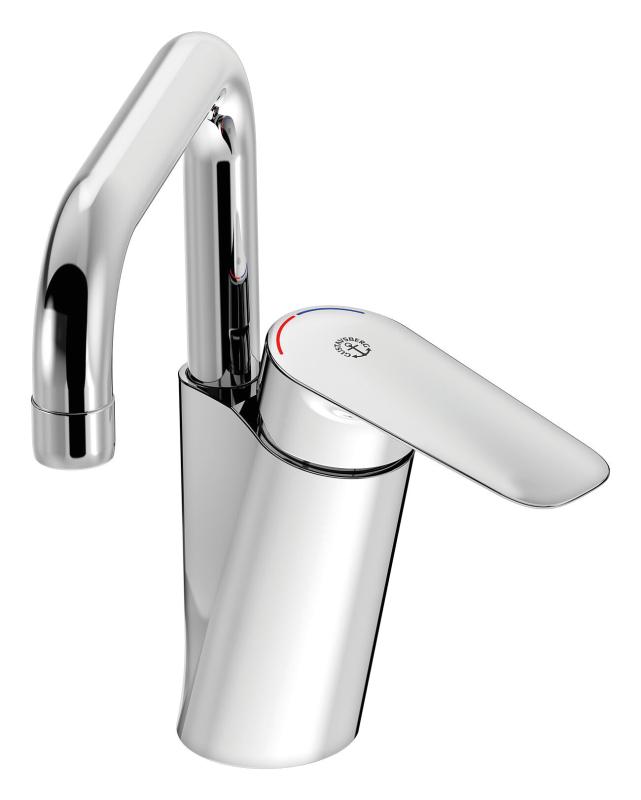 Gustavsberg Atlantic kran for vaskerenne, fast tut. Soft move, keramisk patron med myk og presis drift. Spak med tydelig fargemerking for varmt og kaldt vann.