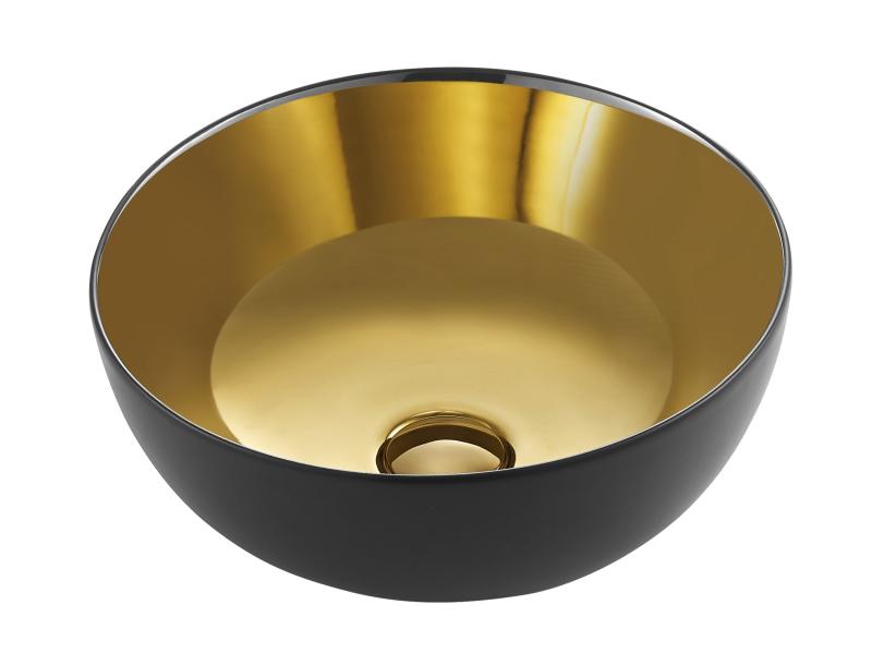 Elegant frittstående porselen servant. Matt sort utvendig og gull innvendig. Servanten er håndlaget. *Bunnventil medfølger ikke