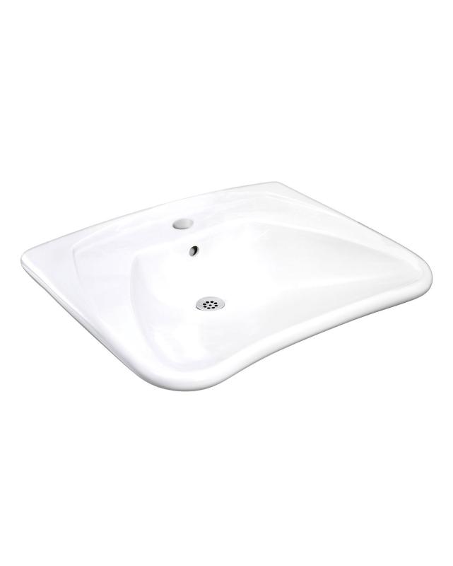 Gustavsberg servant 7119 for boltmontering. Rullestoltilpasset med grunt basseng. 60 x 49 cm.