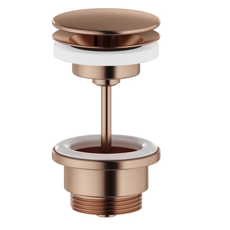 Klikkventil i børstet kobber for bruk på servanter uten overløp. Kan ikke lukkes og er derfor spesielt tilegnet baderom/toalettrom uten sluk.