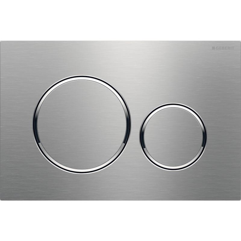 Sigma20 betjeningsplate for aktivering av skyll med Sigma innbyggingssisterner. Sigma20 er med dobbel skyllefunksjon, i børstet syrefast stål med polerte designringer. Easy-to-clean-belegg. Finnes i flere elegante farger. Monteres enkelt i front. Betjeningsplaten setter ikke bare prikken over i-en på badet ditt, den kan også tilby ulike funksjoner som luktavsug, innsats for DuoFresh duftpinner, samt flere skyllefunksjoner for å tilpasse vannforbruket etter behov. Oppgrader badet ditt med Geberit Sigma betjeningsplater og la funksjonalitet møte eleganse på en intelligent måte.
