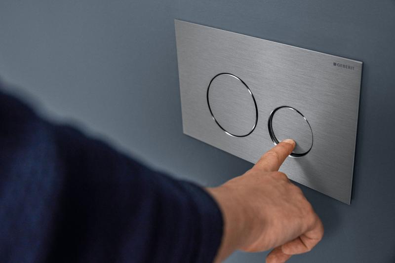Sigma40 betjeningsplate for aktivering av skyll med Sigma innbyggingssisterner. Med dobbel skyllefunksjon og enkel frontmontering, kombinerer Sigma40 design og kvalitet. Den minimalistiske og slanke profilen, kun 4 mm i dybden, gir et elegant uttrykk. Velg mellom firkantede eller runde knapper, og en stilfull overflate i børstet stål i seks farger med Easy-to-clean-belegg, eller en av fire glassfarger. Geberit Sigma40 er det ultimate designstykket som kompletterer det eksklusive badet.