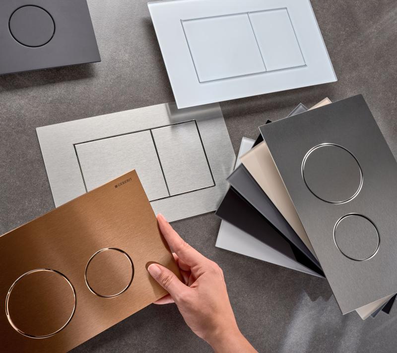 Sigma40 betjeningsplate for aktivering av skyll med Sigma innbyggingssisterner. Med dobbel skyllefunksjon og enkel frontmontering, kombinerer Sigma40 design og kvalitet. Den minimalistiske og slanke profilen, kun 6 mm i dybden, gir et elegant uttrykk. Velg mellom firkantede eller runde knapper, og en stilfull overflate i børstet stål i seks farger med Easy-to-clean-belegg, eller en av fire glassfarger. Geberit Sigma40 er det ultimate designstykket som kompletterer det eksklusive badet.