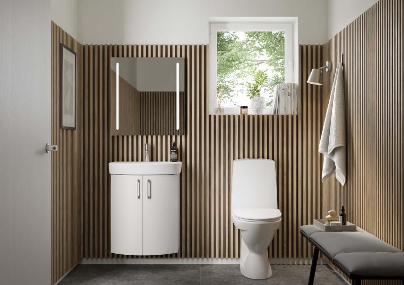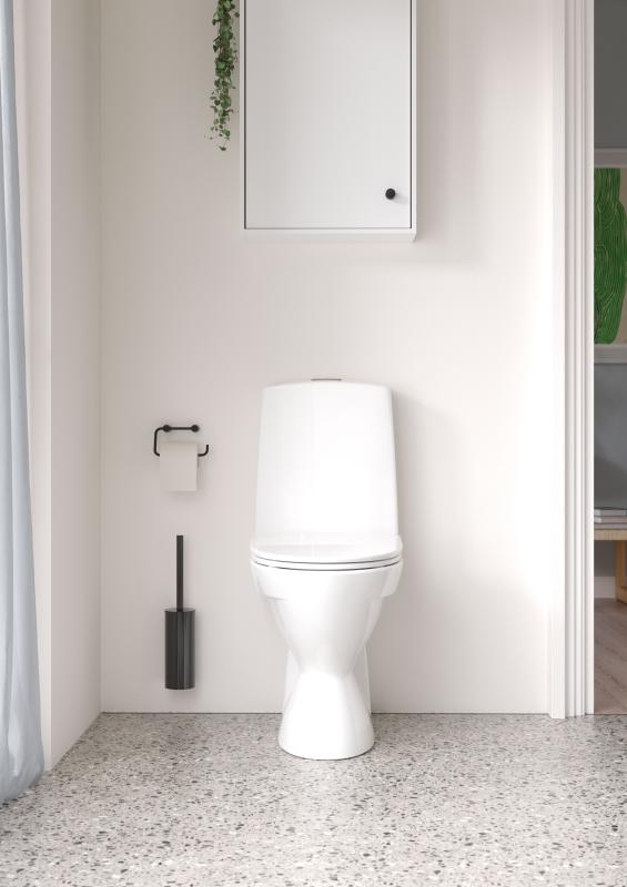 Introduser stil og funksjonalitet til ditt baderom med Porsgrund Glow Rimfree® 60 gulvstående toalett. Designet uten skyllekant, kombinert med ekstra glatt glasur, gjør at rengjøringen blir til en lek. Du har valgmuligheten mellom liten og stor skyllemengde, slik at du kan tilpasse vannforbruket etter behov, og dermed bidra til en mer bærekraftig bruk. Den heldekkende sisternekappen med separat innesisterne i plast reduserer kondens og gir en lydsvak påfylling, noe som løfter brukeropplevelsen til nye høyder. Via skylleknappen kan du legge til en Fresh WC-duftstav, som ikke bare gir en frisk duft, men også bidrar til å motvirke kalk og belegg i toalettet, samt opprettholde renhet og friskhet.