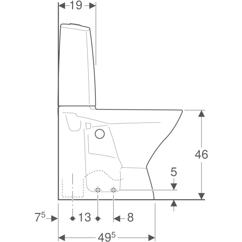 Porsgrund Glow 62 gulvstående toalett er forhøyet og designet uten skyllekant. Den forhøyede sittehøyden gir ikke bare en mer behagelig brukeropplevelse, men gir også økt tilgjengelighet for alle. Kombinert med ekstra glatt glasur, gjør at rengjøringen blir til en lek. Du har valgmuligheten mellom liten og stor skyllemengde, slik at du kan tilpasse vannforbruket etter behov, og dermed bidra til en mer bærekraftig bruk. Den heldekkende sisternekappen med separat innesisterne i plast reduserer kondens og gir en lydsvak påfylling, noe som løfter brukeropplevelsen til nye høyder. Via skylleknappen kan du legge til en Fresh WC-duftstav, som ikke bare gir en frisk duft, men også bidrar til å motvirke kalk og belegg i toalettet, samt opprettholde renhet og friskhet. Toalettet er med skjult S-lås for gulvavløp og festes sikkert og stabilt til gulvet med medfølgende skruer, eller limes med silikon. For best mulig brukerkomfort anbefaler vi Porsgrund Glow toalettsete, som kjøpes separat. Mål: B: 35,5 cm, H: 90 cm, D: 63,5 cm. Sittehøyde 46 cm ekskl. toalettsete.