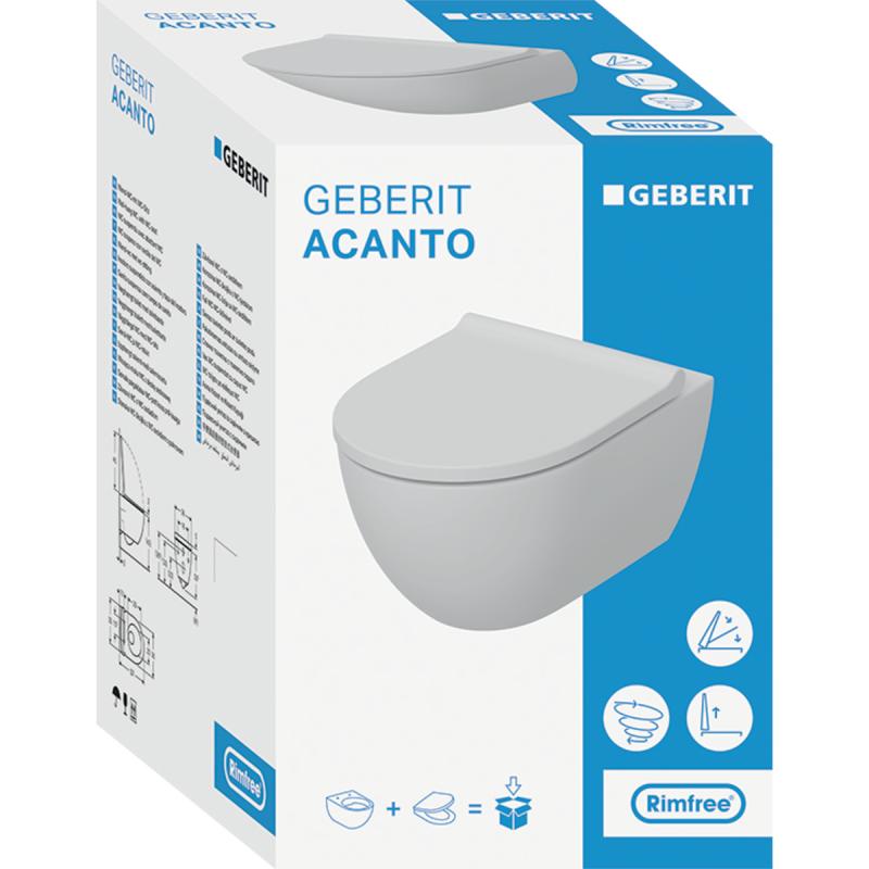 Geberit Acanto vegghengt toalett med toalettsete er en perfekt kombinasjon av innovasjon, effektivitet og estetikk. Designet uten skyllekant og med TurboFlush® skylleteknologi gir dette toalettet en unik skylleytelse som ikke bare er effektiv, men også bemerkelsesverdig stille og mer økonomisk enn tradisjonelle skyllesystemer. Kombinert med Geberit innbyggingssisterne får man maks utbytte av den optimaliserte skyllgeometrien, og oppnår hele 10 ganger bedre skyllytelse. Den skjulte monteringen skaper et minimalistisk utseende og gjør rengjøring enklere. Geberit Acanto leveres komplett med toalettsete, som utfyller det slanke og overlappende designet på en elegant måte. Toalettsetet er myktlukkende og har hurtigkobling, slik at det lett kan løftes av for en grundigere rengjøring av toalettet, og gir deg rask tilgang til alle områder. Mål: B: 36, H: 38,5, D: 53 cm.